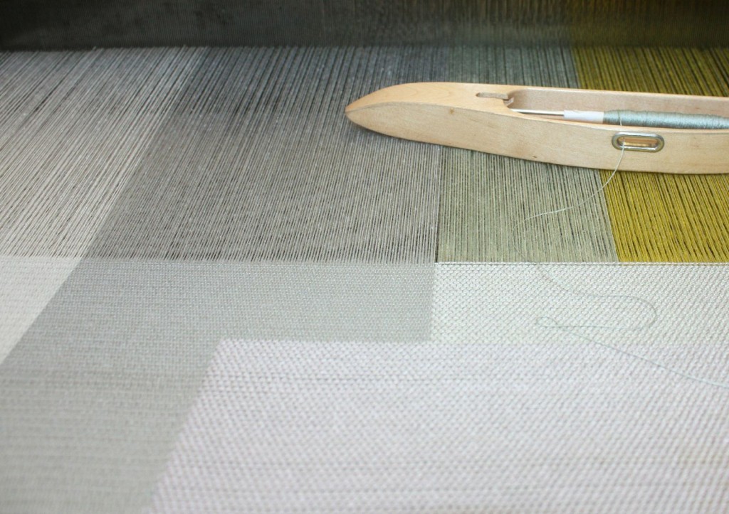 Hand weaving is still at the heart of the designs we produce with many ideas starting on the looms in the studio. Currently I have been working on a series of designs using a Lampas weave which I learned at ANAT (Atelier National D’ Art Textile) in Paris. In keeping with my ongoing fascination with colours and how they relate to each other, I am focusing on soft, tonal shades applied in simple geometric shapes.