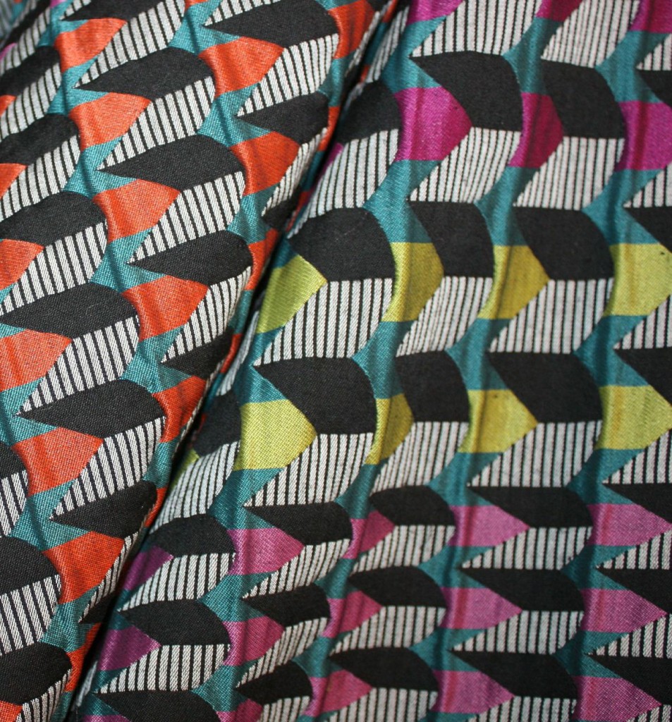 Margo Selby is a woven fabric designer who produces contemporary textile products which take weaving to a new level with innovative mixtures of yarn, graphic pattern and colour.