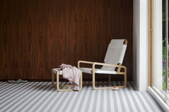 Ben Pentreath for Alternative Flooring had fun with greys pairing this colour with seventies shades in geometric cubes, Trellis and Tetra shapes.