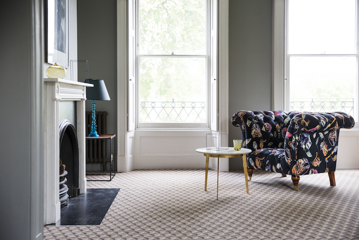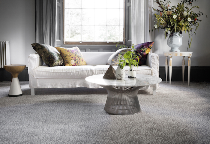 Capello Shell Mist or Strawberry Thief Trellis from the Alternative Flooring with Liberty Fabrics collection give a crafty feel to carpet inspired by William Morris where pattern in tonal greys translate beautifully on floors. It works as grey is seen as a neutral and is naturally easy on the eye.