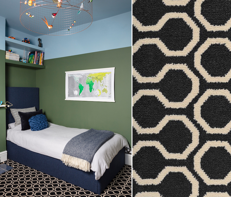 Oscar’s bedroom with Alternative’s Quirky B Honeycomb in Black carpet. Image © Susie Lowe Studio