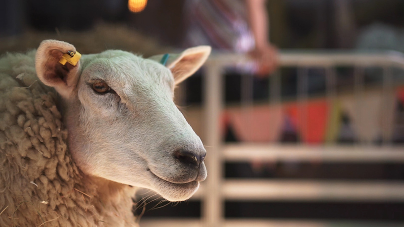 A happy sheep before shearing begins. Courtesy the artist and YSP. Photo ©Paul Wyatt