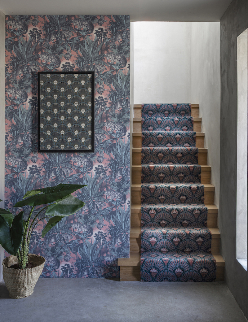‘We’re so excited to be joining forces with Alternative Flooring who share our love of bold colour and print. We have reworked our iconic ‘Deco Martini’, one of our very first designs, for this eye-catching carpet runner. Inspired by the Jazz Age, our Deco Martini print brings Art Deco opulence to your interior in exquisite colours – Teal and Blush. Style up your staircase and make it the star attraction in your home.’