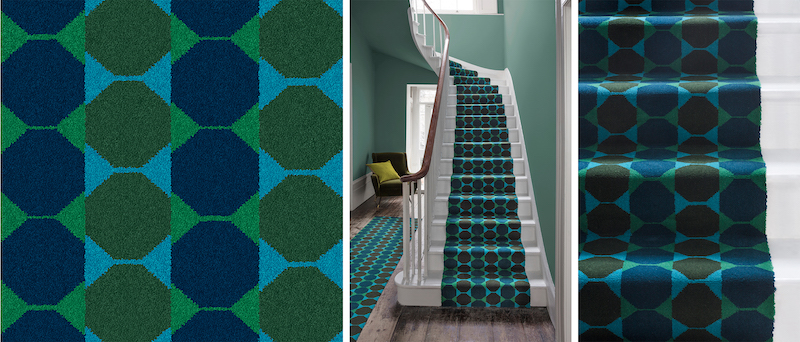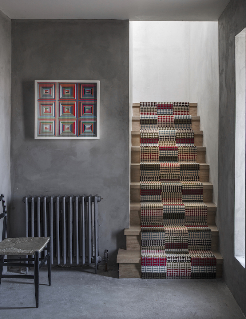 Stair Art also features designs by one of our best-loved 20th century designers. Octagon and Squares and Diamonds are true works of art. These two Lucienne Day carpet designs in their original colourways are back in production and woven in the same factory as they were in 1960s. Lucienne Day’s daughter Paula Day comments: ‘I am absolutely thrilled that these wonderful designs are now back in production, more than fifty years after my mother created them. The patterns and colours have sprung back to life looking as fresh and contemporary as if they’d been designed yesterday. Collaborating with Alternative Flooring has been a joy.’