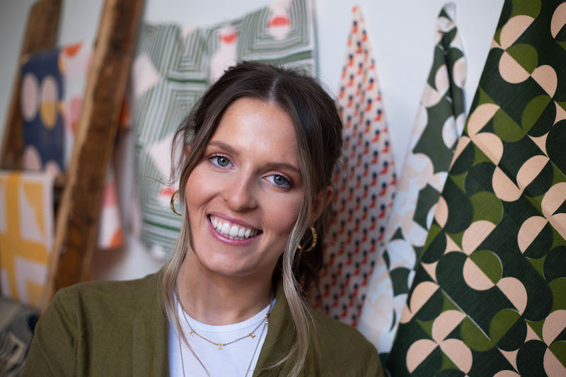 Designer Lily Mullen, the winner of the Alternative Flooring and British Wool competition whose passion for process, playful approach to pattern and natural ability with colour impressed the judges. Photography © Sarah McLean