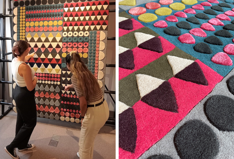 Festival Rug by Margo Selby and Quirky Stayathome Fibonacci by Louisa Knapp as seen at The Museum of Carpet
