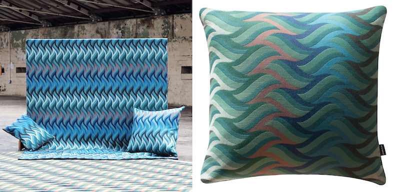 Quirky Stayathome Fibonacci Carpet as seen exhibited with the matching cloth and cushion at Campaign for Wool.