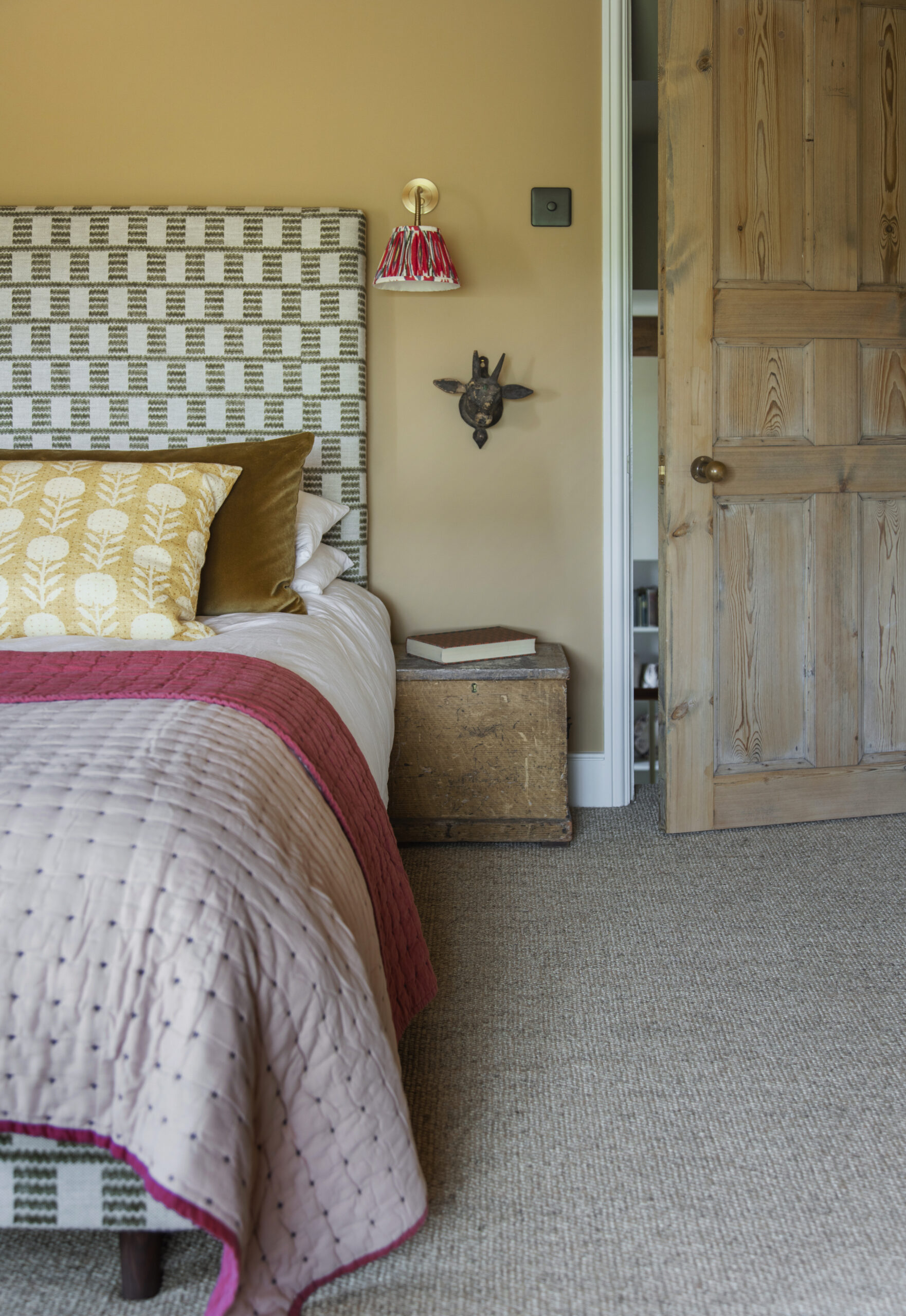 For a sumptuous feeling all year round, look for materials that are soft, breathable and durable. Sticking with a neutral tone on the carpet gives you the perfect base to layer with a playful rug for an added burst of colour and pattern, with summer-inspired hues.