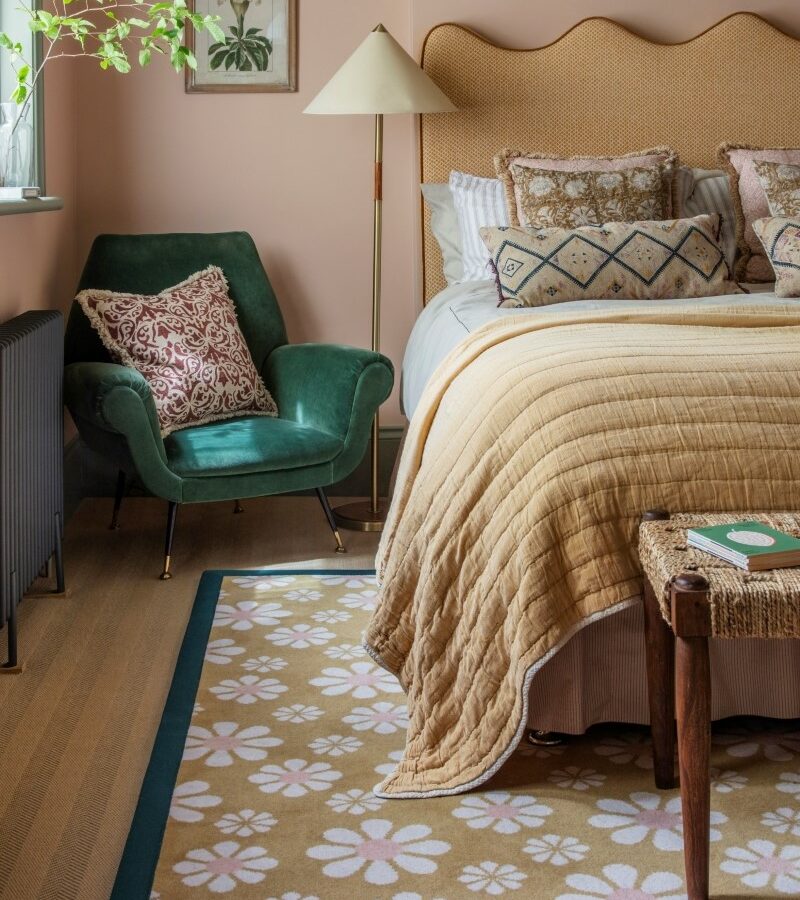 Stylist Lucy Gough’s Rug Stars choice is a patterned Quirky B Cube Hawksmoor carpet designed by Ben Pentreath for Alternative Flooring.