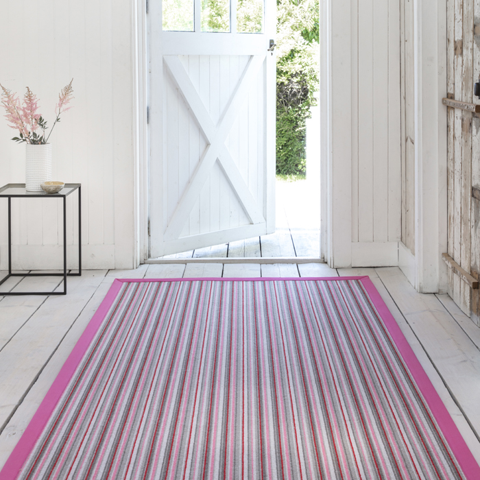 Interior Stylist and TV personality, Sophie Robinson’s Rug Stars choice is a Quirky B Flowers of Thorpe Summer Garden with a single cotton border in Navy. This patterned rug is inspired by Liberty Fabrics Summer Garden design.