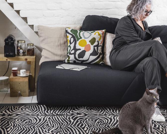 "I love the feeling of comfort rugs can bring to the room. The Make Me A Rug service was so easy! Downstairs I have lots of soft rugs that I can sit on and watch TV, a sisal rug for the hallway and the main thoroughfare, and a lovely soft carpet in the snug."